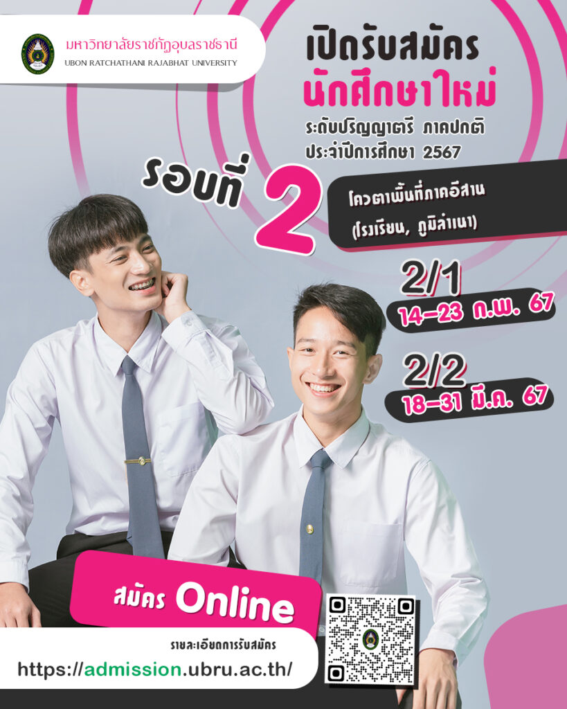 หลักสูตรที่เปิดรับสมัคร ติดตามได้ที่ https://admission.ubru.ac.th/
